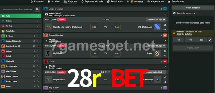 O 28r bet oferece uma grande seleção de opções de apostas em e-sports com probabilidades competitivas